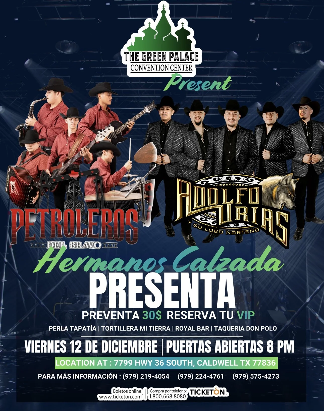 Tickets available for purchase at tixplug.com and in Caldwell/Bryan TX stores: La Perla Meat Market, Tortilleria Mi Tierra, King’s Liquor